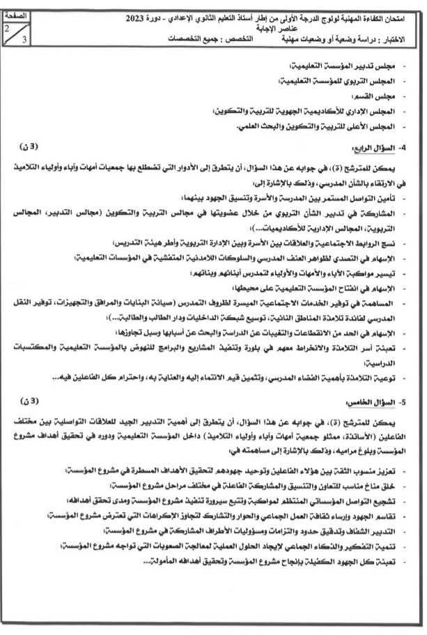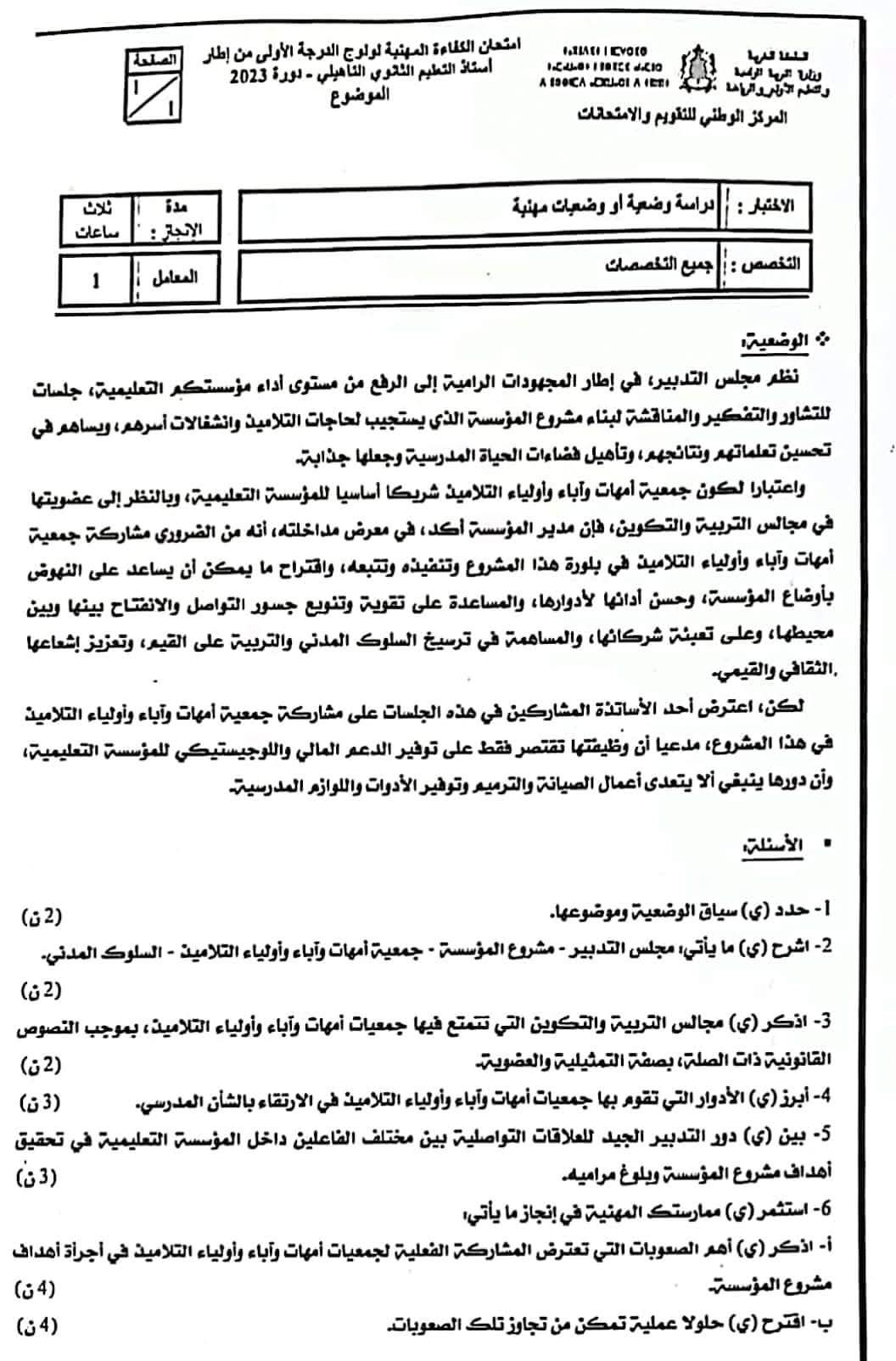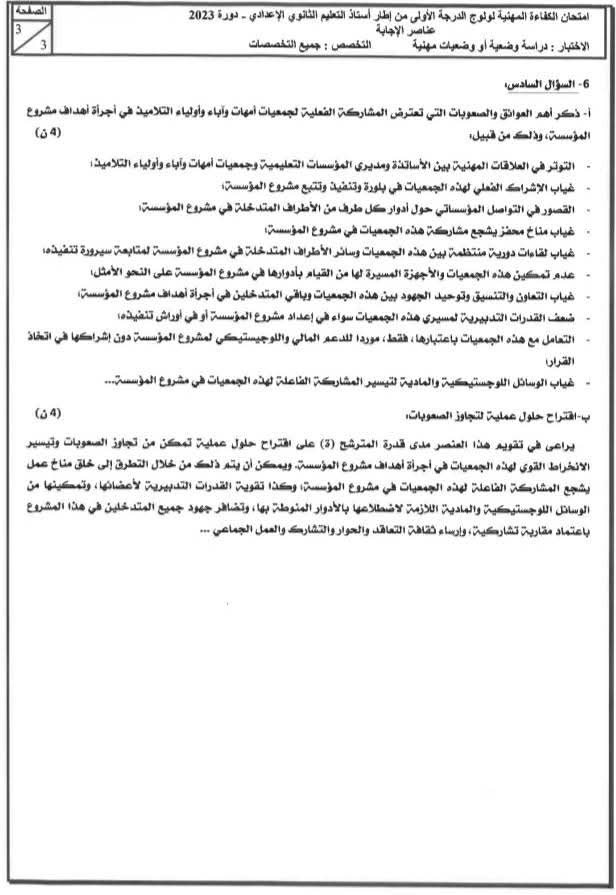 استعدادا للمباريات المهنية 19 (2025) : تصحيح وضعية مهنية 2023 (إعدادي وثانوي)