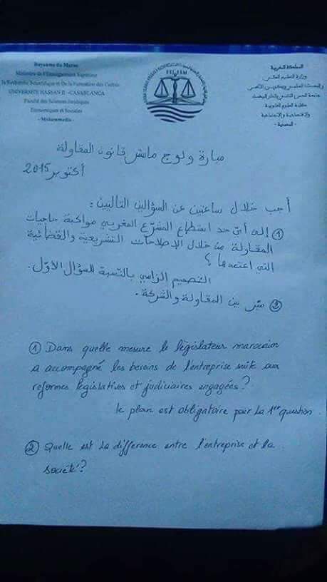 اختبار الشق الكتابي من مباراة ولوج سلك تكوين أطر الإدارة التربوية دورة ماي 2015