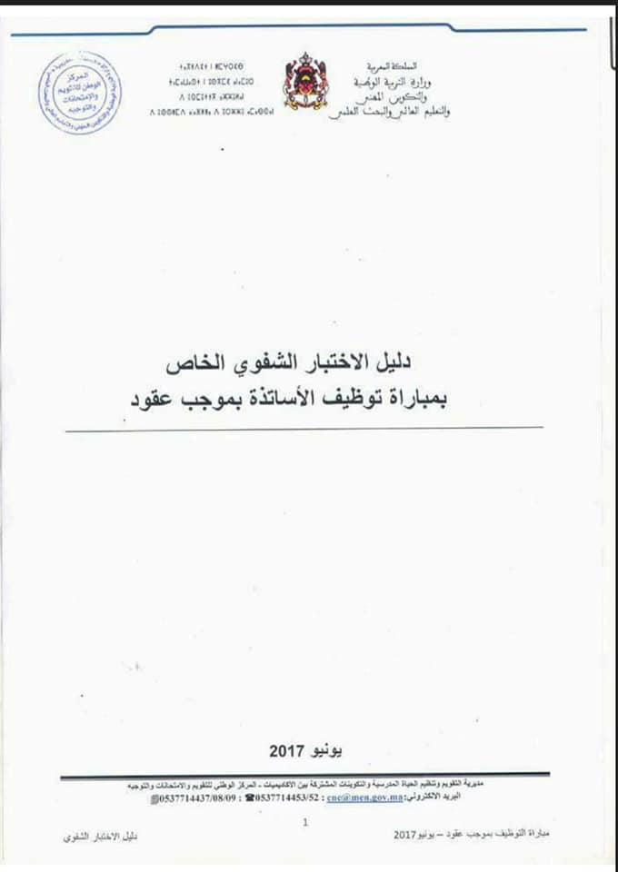 دليل الإختبارات الشفوية الخاص يمبارة الاساتدة بموجب عقود