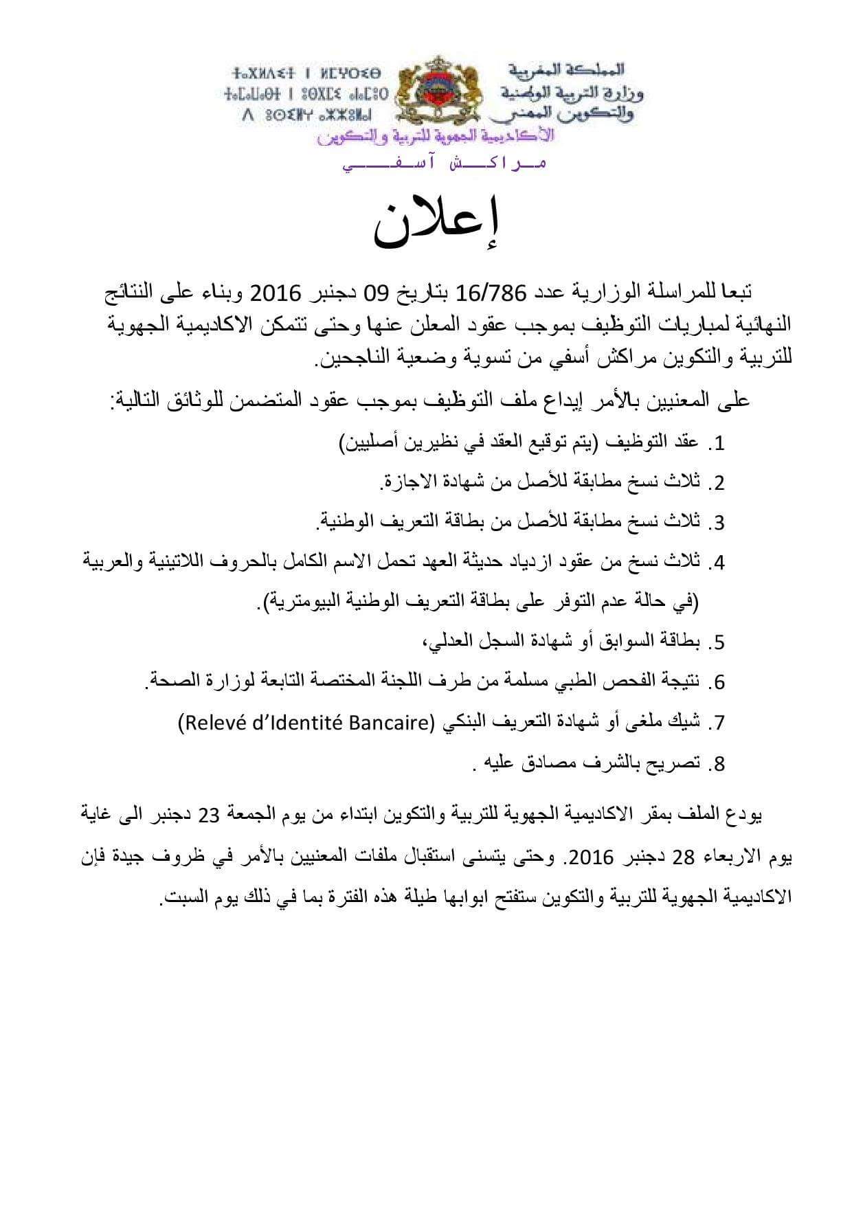 1. افتراضي فقط لأخذ فكرة حول ملف إجراءات ووثائق ملف التوظيف الأكاديمية الجهوية مراكش اسفي دورة 2016